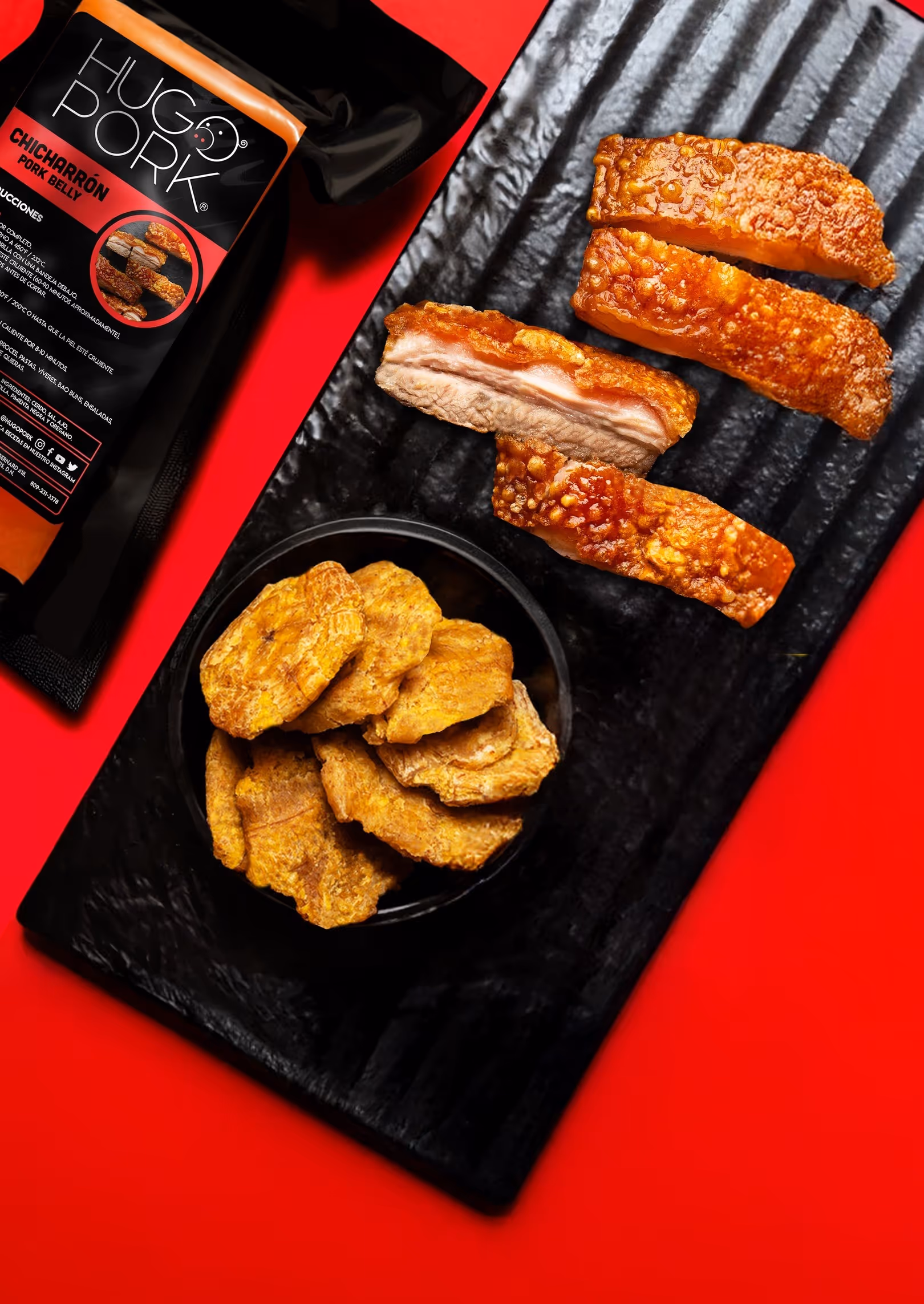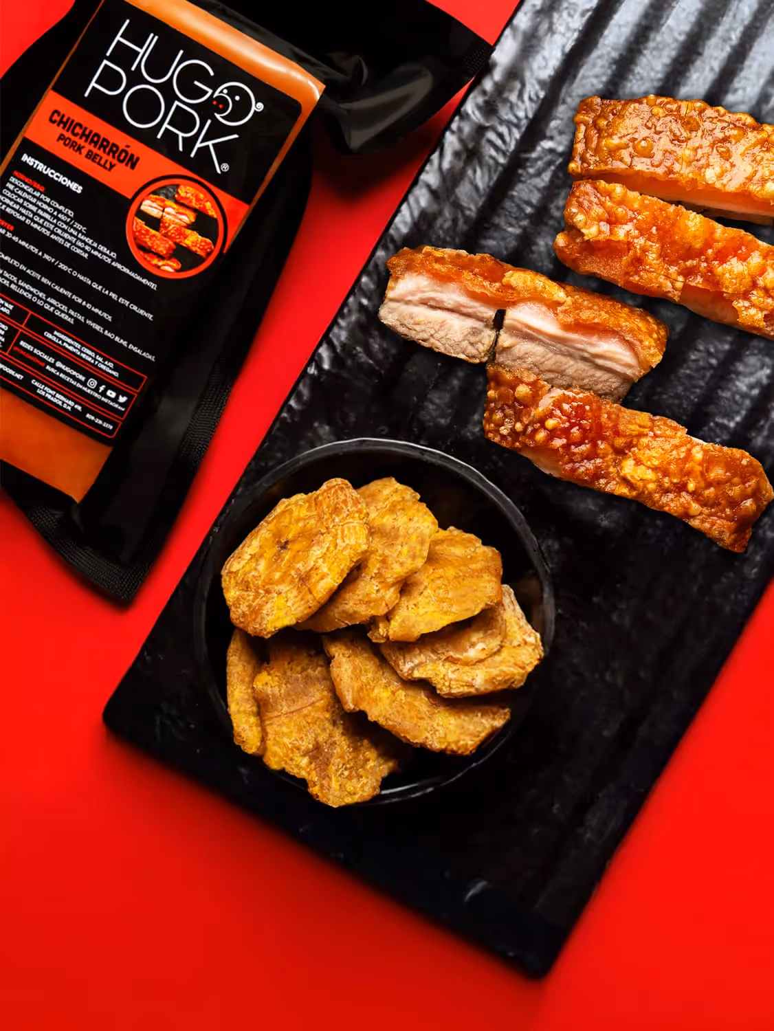 Barrigada de cerdo porcionada, precocida y sazonada.